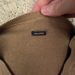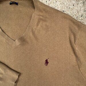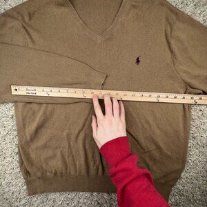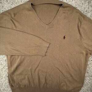 Polo Ralph Lauren Pima Cotton Sweater V Neck Tan Brown Long Sleeve ~XL Red Pony