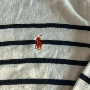 Polo Ralph Lauren Pima Cotton luxury knit striped soft sweater Orange logo men M