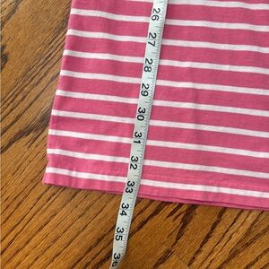 Stylish pink T-shirt dress with white stripes. Only worn a few times, in perfect condition. Fits more like a large than stated size of XL. Measurements pictured.