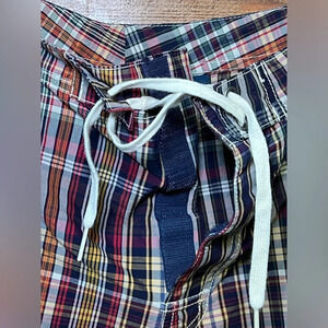 EUC! Vintage plaid Polo Ralph Lauren board shorts in a Men's size 36. One side cargo pocket that closes by velcro. Velcro fly and tie waist closure