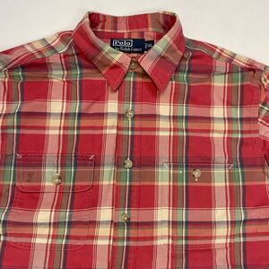 Polo Ralph Lauren Plaid Button Up Shirt Men XL Salmon Red Pockets Long Sleeve