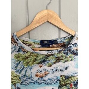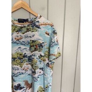 Polo Ralph Lauren Pocket T-Shirt L Large Tropical Islands All Over Print Blue