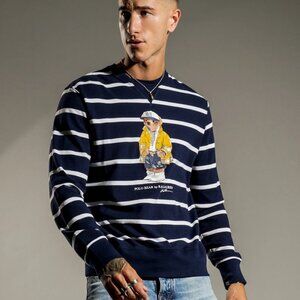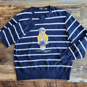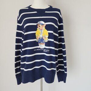 Polo Ralph Lauren Polo Bear CP-93 Mesh T-Shirt Long Sleeve Preppy Sailing Blue White Stripe 100% Cotton