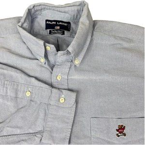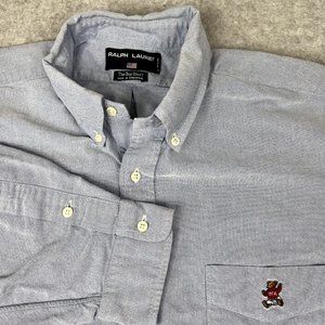Polo Ralph Lauren Polo Bear Size XL Big Shirt Button Up Long Sleeve Blue Vintage