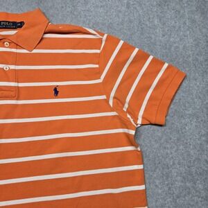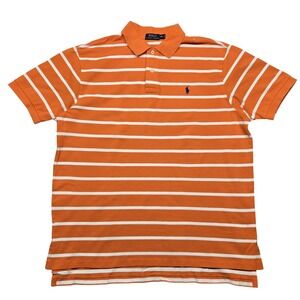 Polo Ralph Lauren Polo Shirt Mens 2XL Orange White Striped Classic Pony Cotton Casual