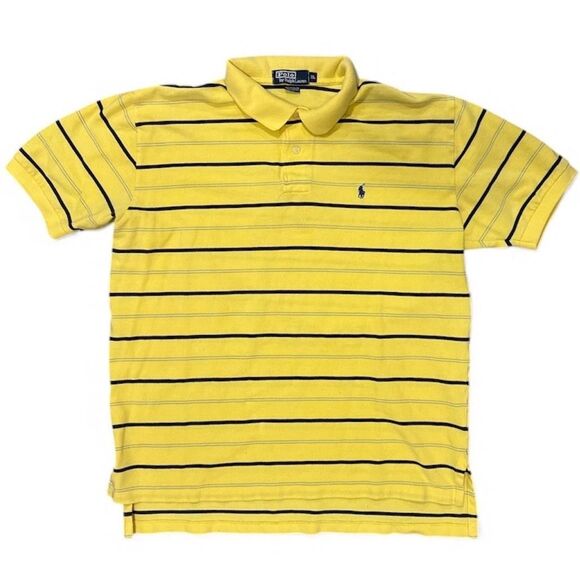 Polo Ralph Lauren Polo Shirt Mens XL Yellow Navy Stripe Short Sleeve Cotton