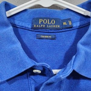 Polo Ralph Lauren Polo Shirt Mens XL Blue Solid Custom Fit 100% Cotton Vintage