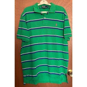 Polo Ralph Lauren Polo Shirt Mens XL Green Blue Stripes Pony Logo Short Sleeve