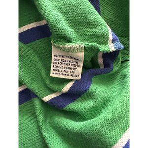 Get ready to add some classic and sporty style to your wardrobe with this Polo Ralph Lauren Polo Shirt. This shirt features medium-washed, green and blue striped design that adds a touch of personality to your outfit. The shirt has a collared neckline and short sleeves, making it perfect for summer, fall, and spring.