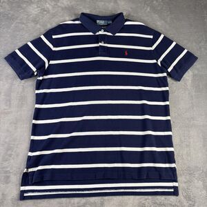 Polo Ralph Lauren Polo Shirt Mens XL Navy White Striped Red Pony Pique Knit