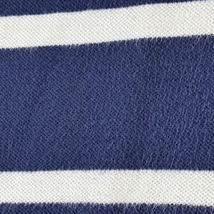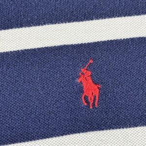 Color/Pattern: Navy blue with white horizontal stripes; red embroidered pony logo at chest