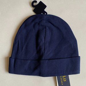 Polo Ralph Lauren Pony Logo Cuffed Thermal Waffle Knit Beanie Ski Hat Cap Navy