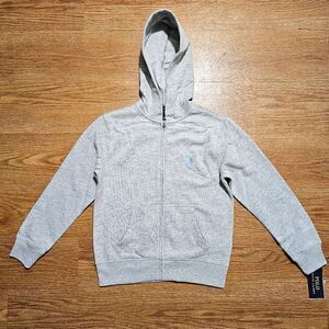 Polo Ralph Lauren Pony Logo Fleece Hoodie Jacket Full Zip S Unisex Grey Blue New