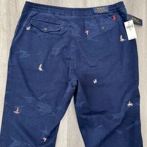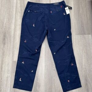 New Polo Ralph Lauren Prepster Chino Mens Sailboat Embroidered Navy Blue Vacation Resort Nautical Coastal Pants Size XLT