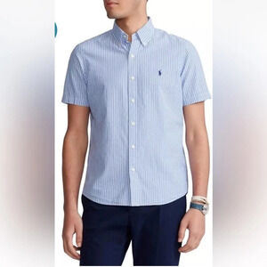 Polo Ralph Lauren Seersucker Button Up Stripe Cotton Shirt Logo XL (1102)