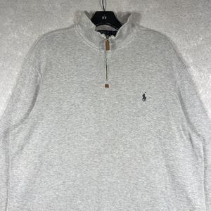 Up for sale: Polo Ralph Lauren Pullover Sweater Mens Large 1/4 Zip Gray Preppy Cotton Knit