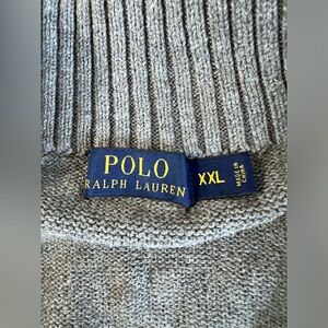 Elevate your style with this Polo Ralph Lauren pullover sweater in size 2XL. The dark gray color with a subtle green pony logo is perfect for any occasion. This sweater is designed with a 1/4 zip and features a comfortable regular fit.