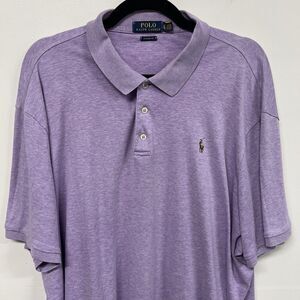 Style: Polo Ralph Lauren Mens Classic Fit Polo Shirt Size XL Heathered purple, short sleeves, ribbed collar, and three-button placket.