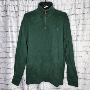 Polo Ralph Lauren Quarter Zip Pullover Sweater Green Mens XL Navy Logo Cotton. Condition is Pre-owned. Shipped with USPS Priority Mail.