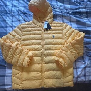 🐎 Polo Ralph Lauren Quilted Packable Water Repel Puffer Jacket Yellow Size L NEW
