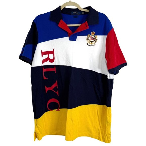Polo Ralph Lauren RLYC Yacht Club Colorblock Polo Shirt Crest Cotton Mens Size L