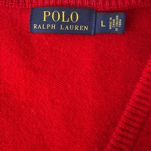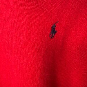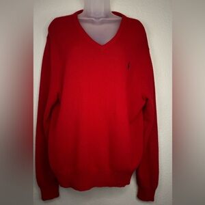 Polo Ralph Lauren Red 100% Wool V-neck Pony Sweater Pullover Size Large Unisex