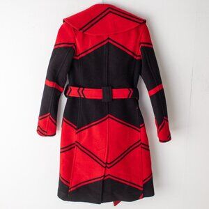 Polo Ralph Lauren Red Black Carlyn Double Breasted Belted Wool Coat SZ. 0 NWT