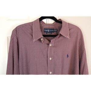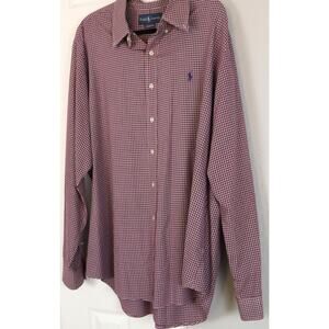100% Cotton! Deep red and cream! Polo Ralph Lauren Red Classic Fit XXL Mens Big & Tall Plaid Check Button Down