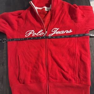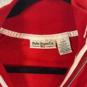 Polo Ralph Lauren Red White Embroidered Spell Out Y2K Full Zip Sweatshirt Size S