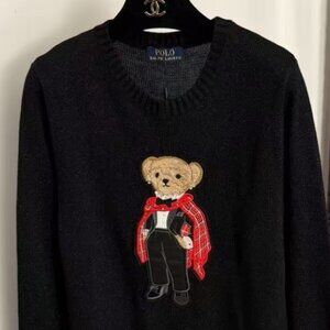 Polo Ralph Lauren Red cape bear pattern black sweater