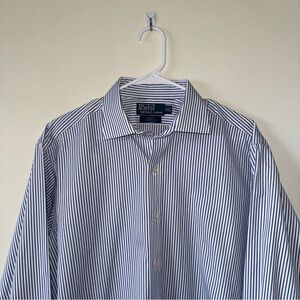 Polo Ralph Lauren Regent Dress Shirt Mens 16.5 32/33 Blue Striped Button Down