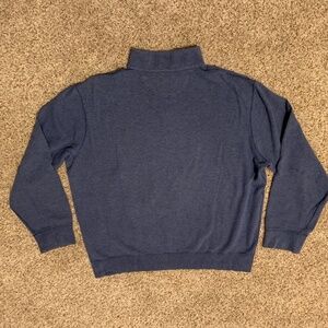 Mens Polo Ralph Lauren Performance 1/4 quarter zip front sweater / sweatshirt. Blue Heather, Gray trim, red horse. Very Very Soft and Light weight, made of 67% cotton, 29% viscose, 4% nylon. Size Large with actual measurements in the last 3 pictures. Excellent Condition.