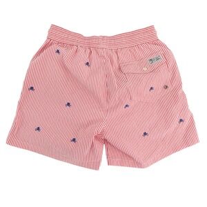 Polo Ralph Lauren Seersucker Skull Embroidered Striped Swim Trunks Shorts Red S