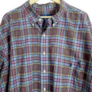 Polo Ralph Lauren Shirt 3XB Blue Purple Plaid 100% Cotton Button Front Collared