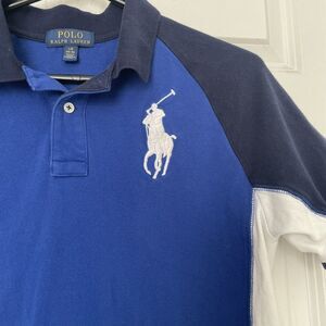 Great used condition, no holes or stains noted. Youth Large 14-16 measures 19 inches armpit to armpit and 23 inches long from shoulder to bottom hem. Smoke free. Boys Large 14-16 Blue Big Pony #2 Preppy Short Sleeve
