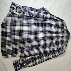 The Polo Ralph Lauren Benford Men's Large Check Button Down Shirt with Flap Pocket is a classic and preppy piece made from woven cotton fabric. This long sleeve shirt features a collared neckline, button closure, and comes in a stylish blue color perfect for casual, business, or travel occasions. With its timeless design and quality brand, this shirt is a versatile and must-have addition to any man's wardrobe, offering a comfortable fit and a touch of sophistication to your look. Cleaned according to manufacturer recommendation. Measurements and condition are shown in photos.
