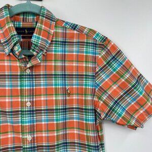 Polo Ralph Lauren Shirt Blue orange plaid Check colored embroidered Pony Mens si