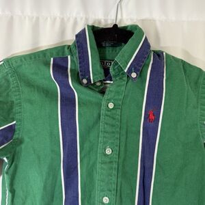 Polo Ralph Lauren Shirt Boys 7 Blue Green Striped Long Sleeve 100% Cotton
