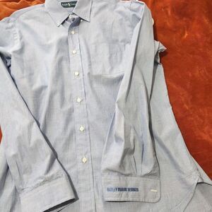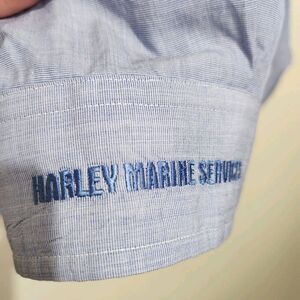 The Polo Ralph Lauren shirt features a large Harley Marine Service logo on one sleeve, adding a touch of rugged sophistication to the classic button-up design.