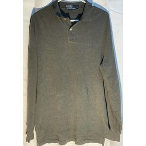 Polo Ralph Lauren Shirt Light Sweater Mens Large Green Long- Sleeve Cotton Pony.