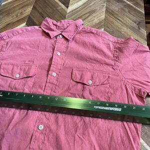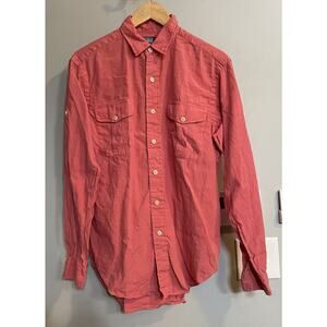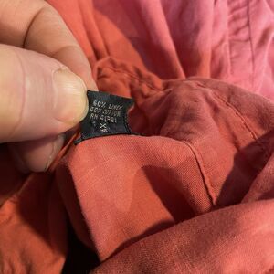The Polo Ralph Lauren shirt is a vintage preppy button-up style designed for men in a custom fit size medium. It features a solid salmon orange pink color in a lightweight and breathable linen and cotton blend fabric, making it perfect for casual wear. The long sleeve shirt has a button closure and is ideal for those who appreciate classic, timeless fashion with a touch of sophistication.