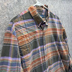Polo Ralph Lauren Shirt Men Extra Large Brown Pink Casual Button Down Plaid XL