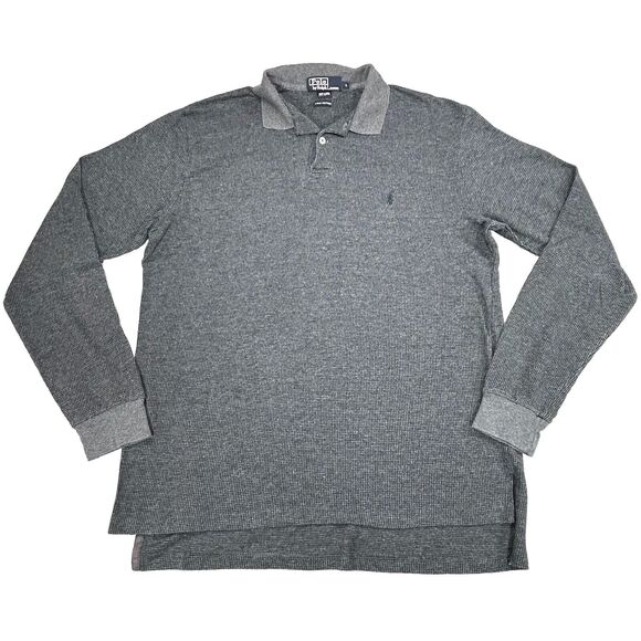 Vintage Polo Ralph Lauren Shirt Men's Large Gray Black Pima Houndstooth Green Pony