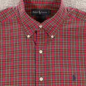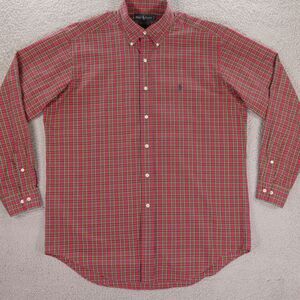Polo Ralph Lauren Shirt Men Large 16 -34/35 Yarmouth Red Green Plaid Long Sleeve