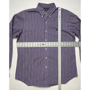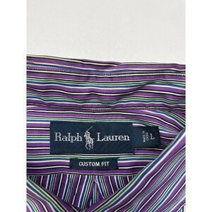 Polo Ralph Lauren Shirt Men Large Purple Green Pony Button Up Dress Striped