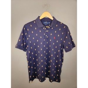 Polo Ralph Lauren Shirt Men M Navy Short Sleeve Classic Fit All Over Print Crest