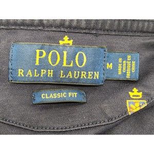 This shirt is easy to care for and can be machine washed. It is also stretchy and breathable, making it perfect for any season. This Polo Ralph Lauren shirt is a size M and has a classic fit for a comfortable and relaxed feel. Add this shirt to your wardrobe for a versatile and stylish addition.