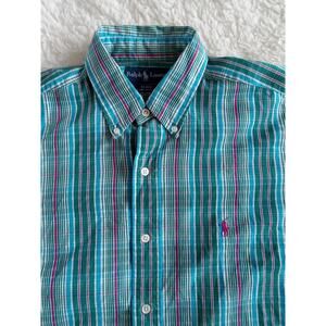 Polo Ralph Lauren Shirt Men Medium Blue Green Pink Plaid Button Up Casual Preppy