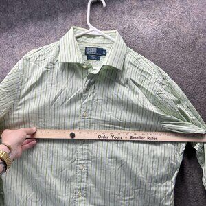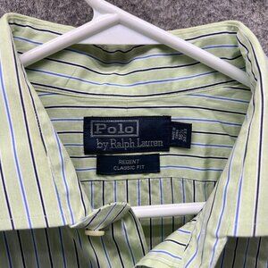 Polo Ralph Lauren Shirt Mens 16.5 32/33 Green Stripe Regent Classic Fit Dress