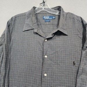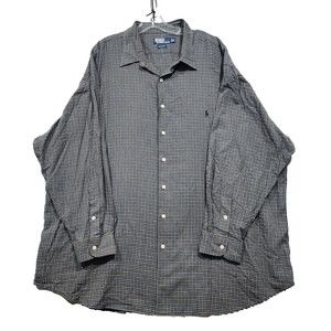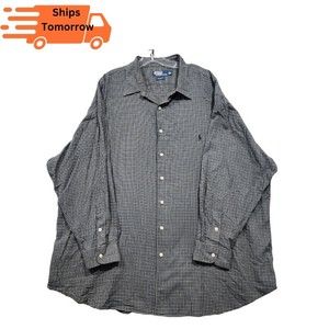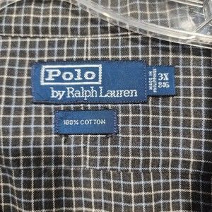 Polo Ralph Lauren Shirt Mens 3XB Black White Chekcer 100% Cotton Black Pony Vtg